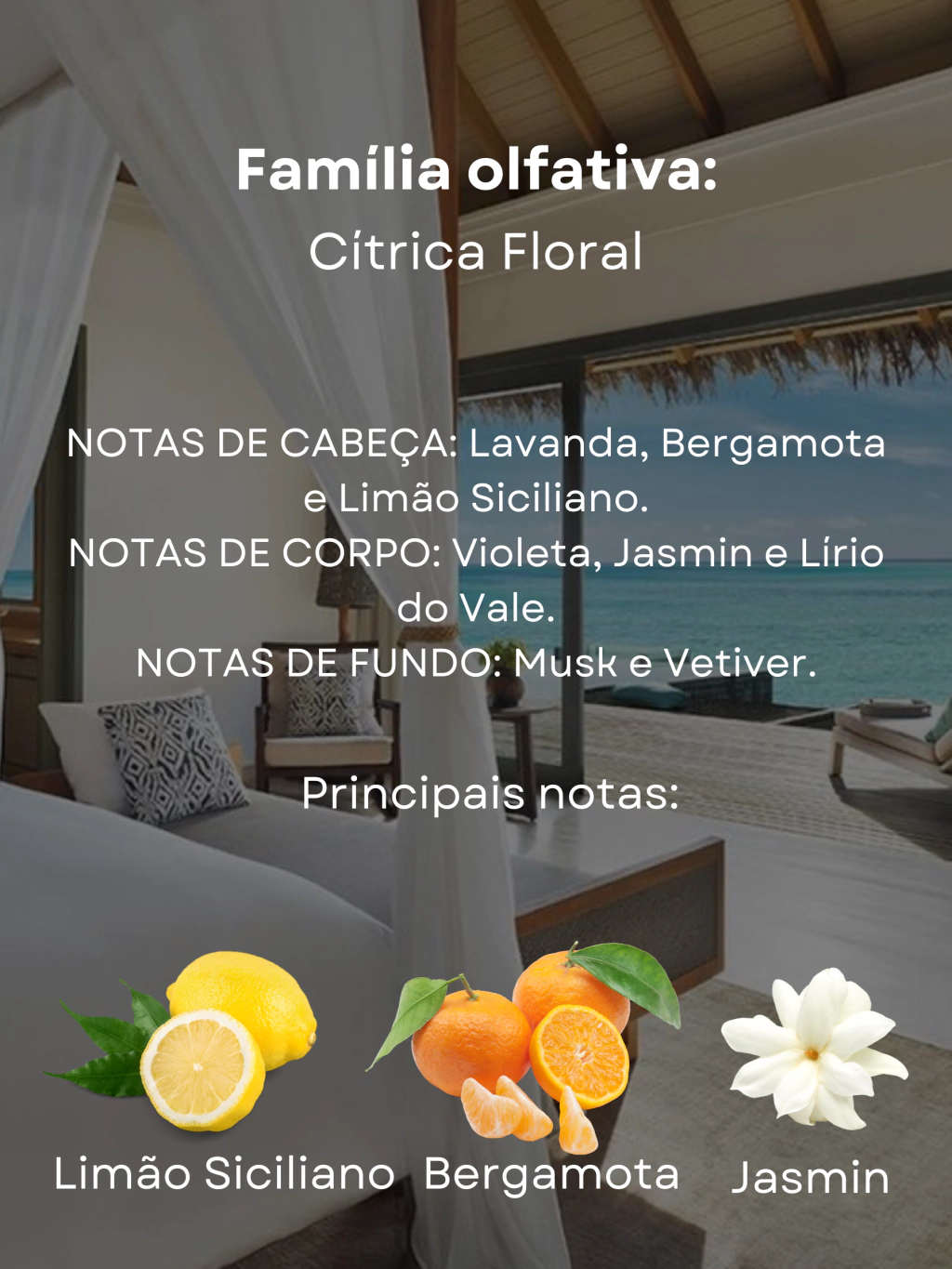 NOTAS DE CABEÇA: Lavanda, Bergamota e Limão Siciliano.